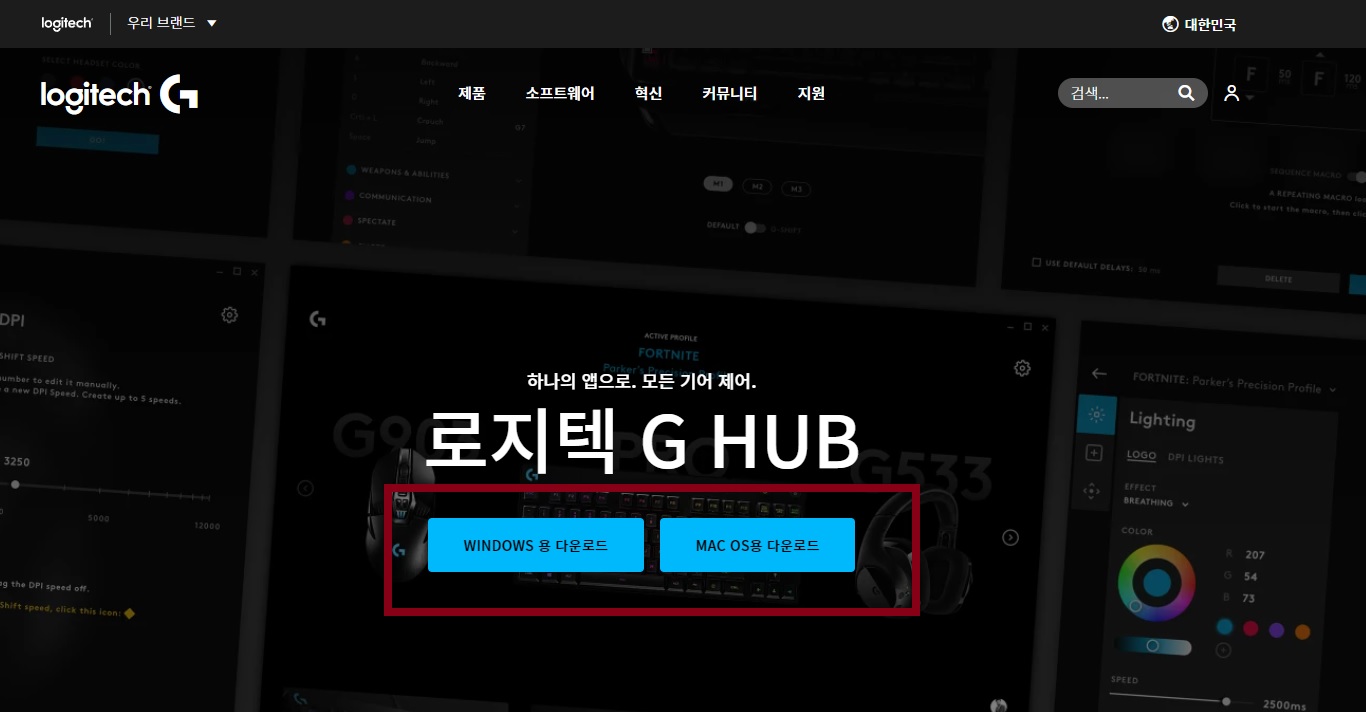 로지텍 지허브를 다운로드하기 위해서는 로지텍 공식 사이트에 접속하여 받으셔야 합니다.